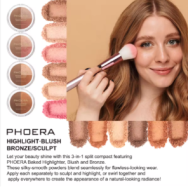 3 in 1 MAKEUP PALETTE: This multifunctional makeup kit includes blush, highlighter and bronze, with the texture of matte and shimmer, which can easy to create a perfect three-dimensional natural makeup.
